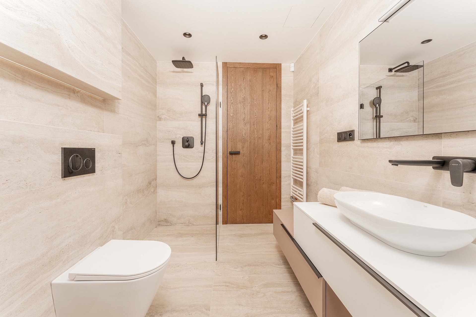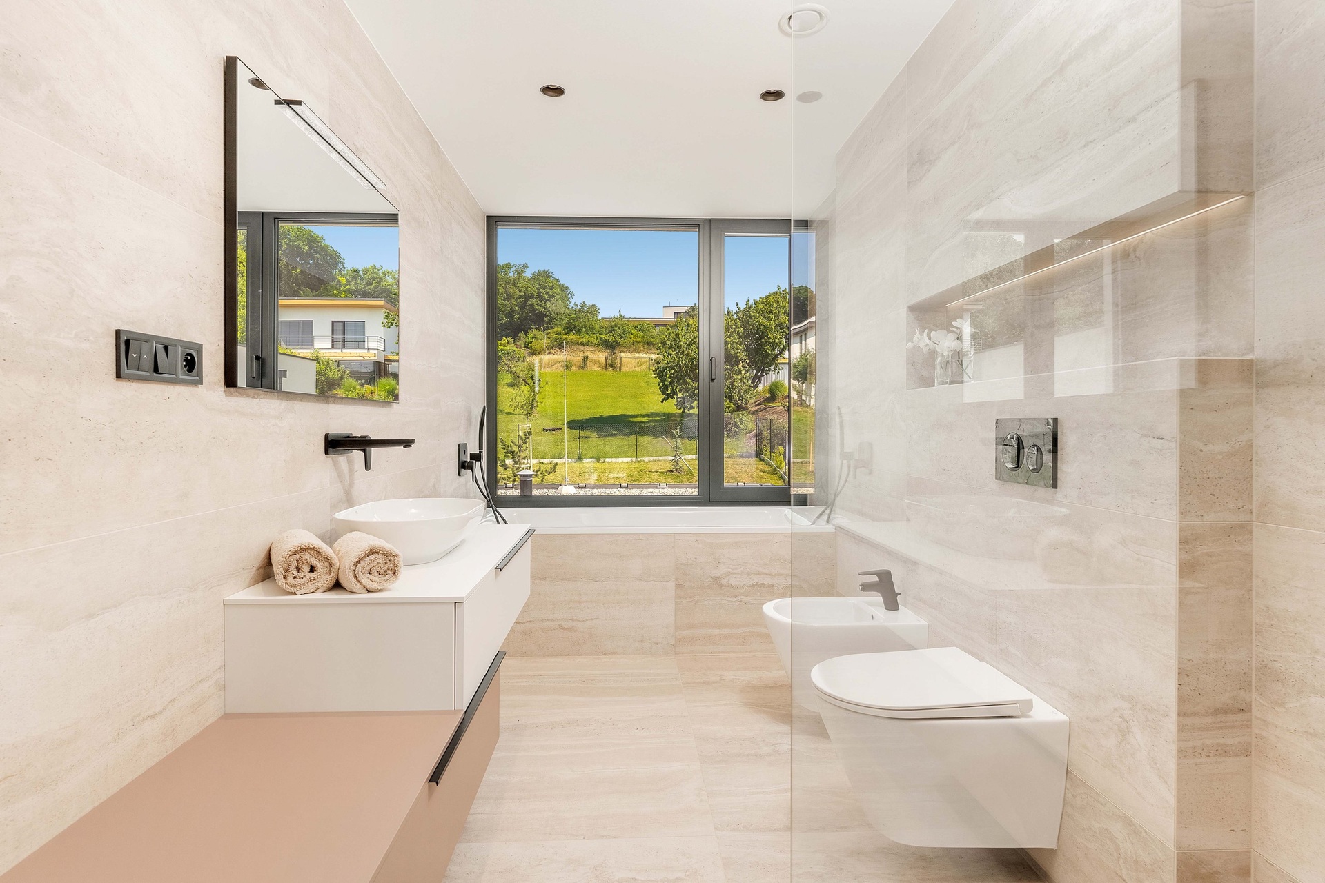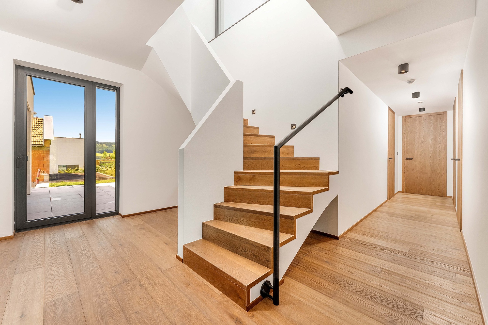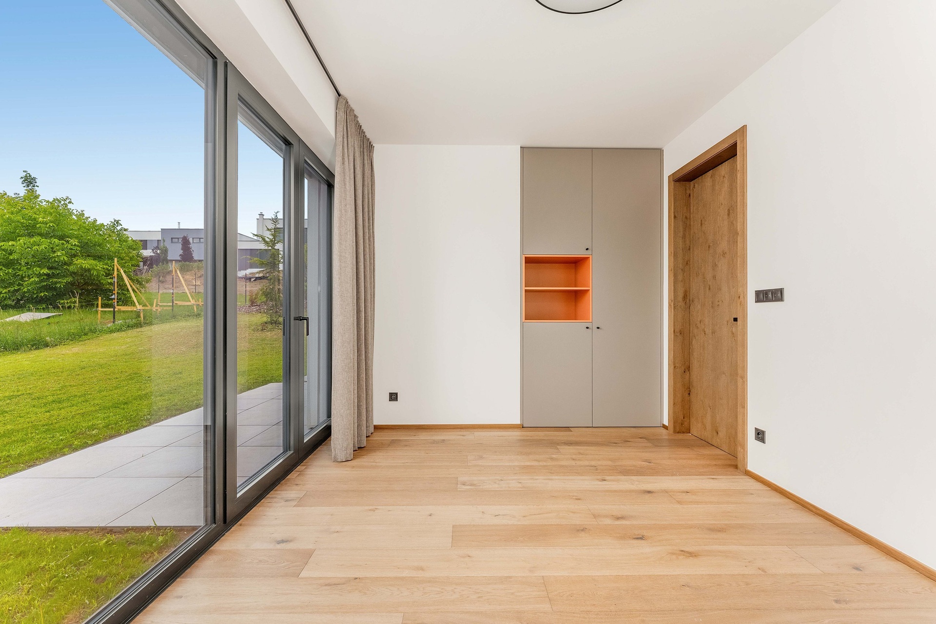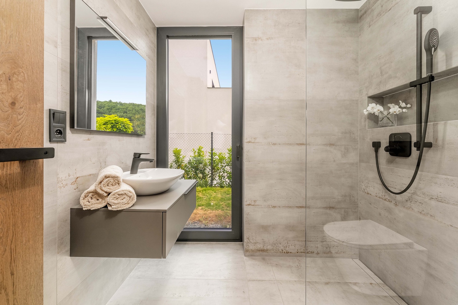 Dům je vybaven podlahovým topením a příprava na klimatizaci je přivedena do každého pokoje.