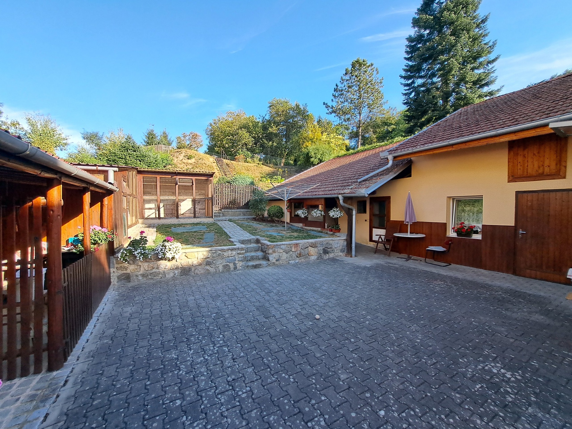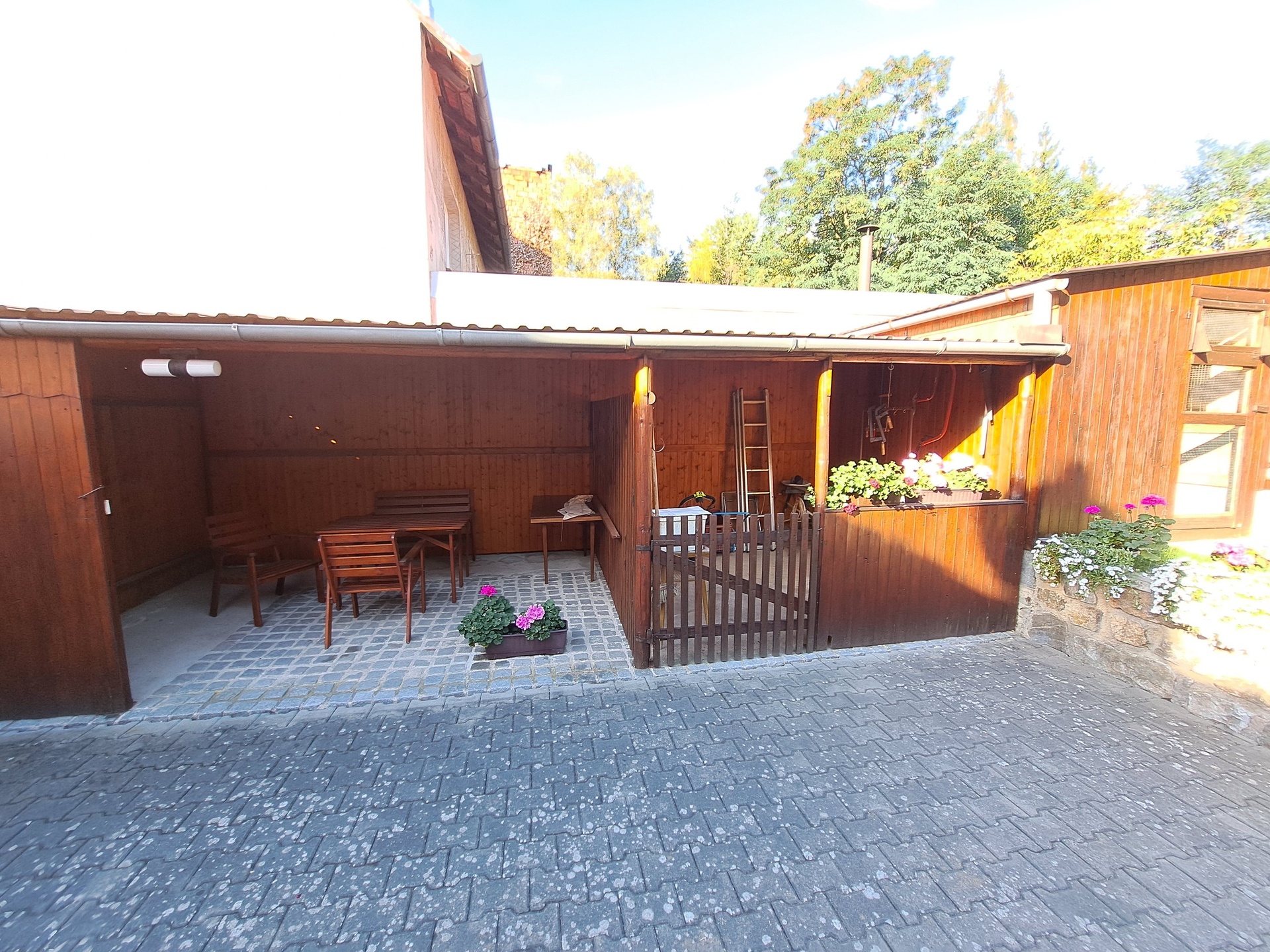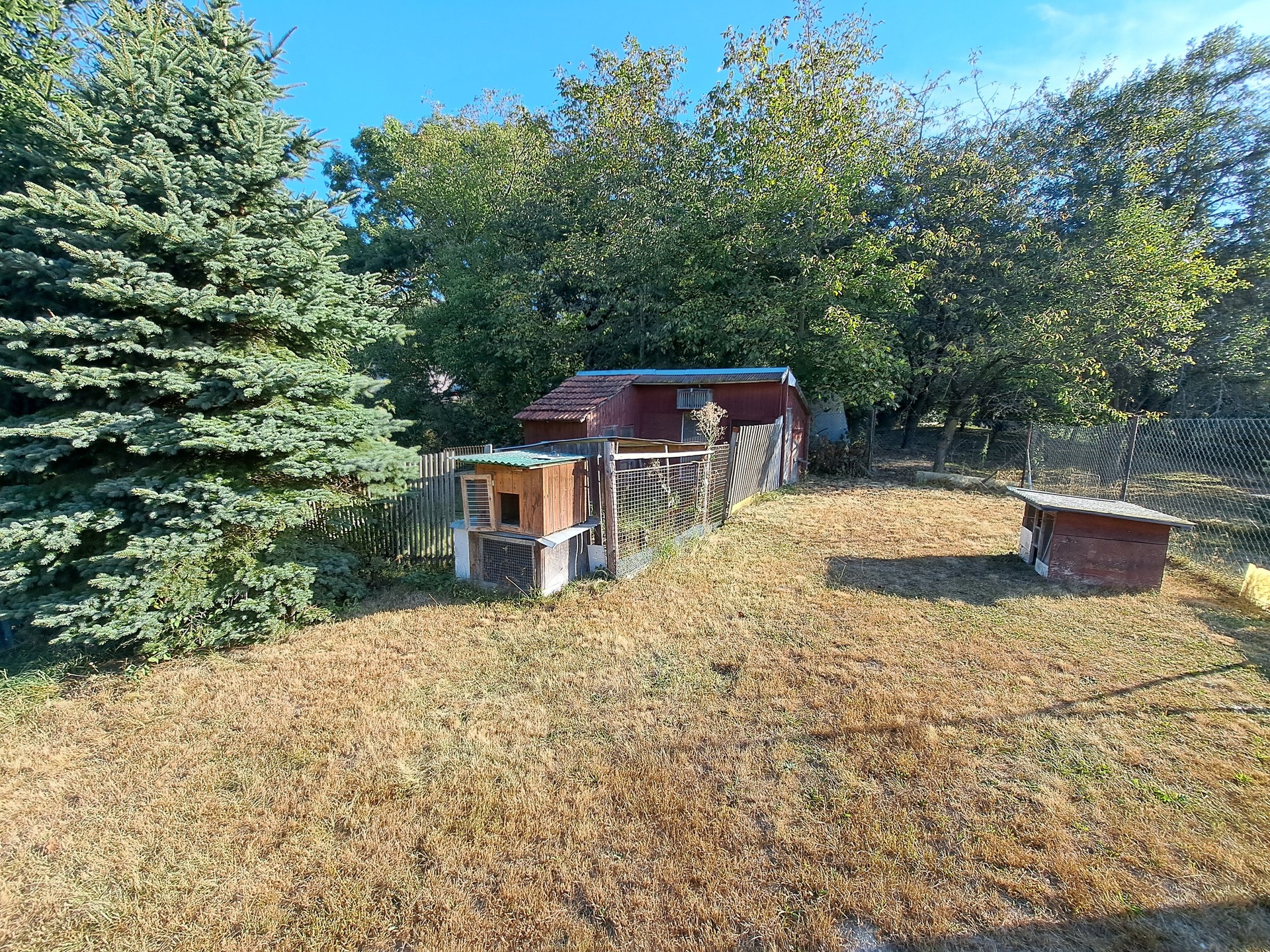 Další: kryté sezení (11,9 m²), přístřešek/sklad (11,9 m²), sklep (13,0 m²), sklep (9,6 m²), dílna (9,8 m²), letní kuchyň (10,9 m²), pozemek/zahrádka za domem (částečně ve svahu)