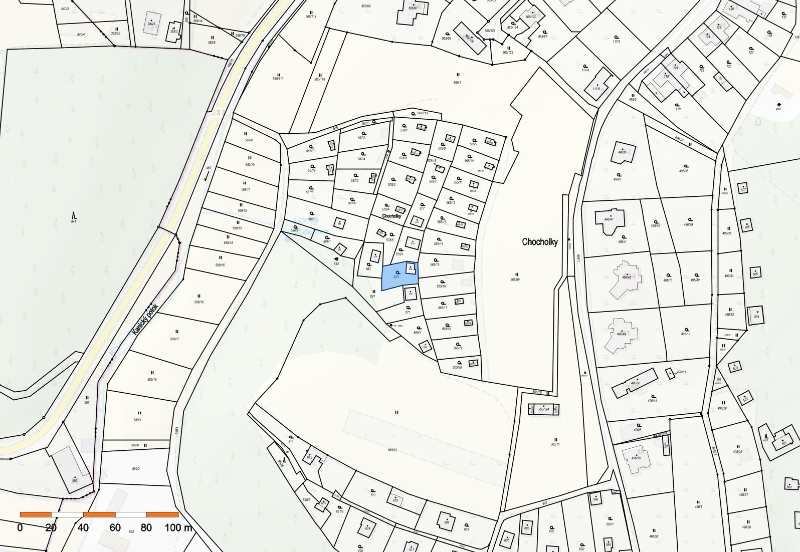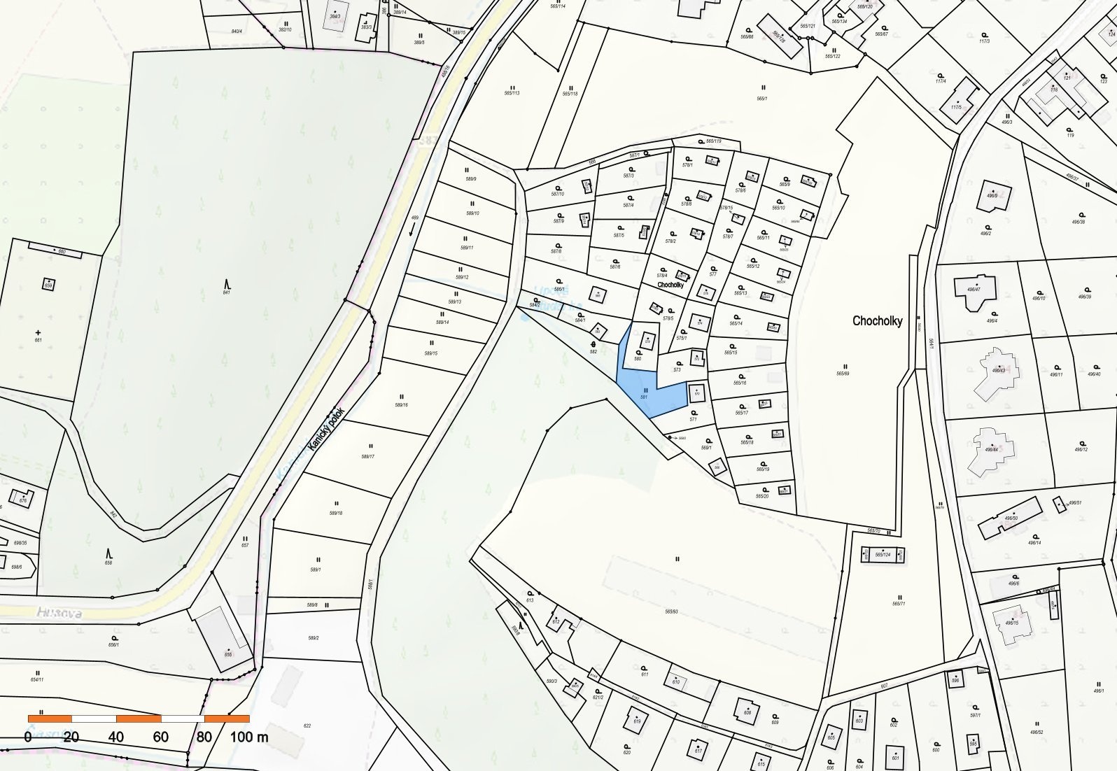 Dále je součástí prodeje id. 1/20 pozemku prac.č. 581 trvalý travní porost (rokle), který zajišťuje přístup k chatě.