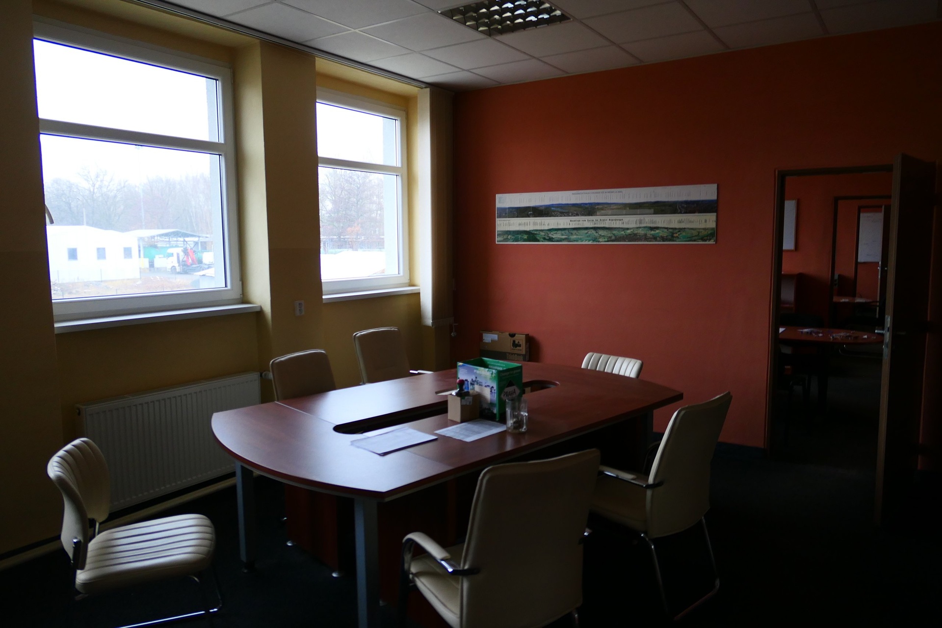 Zúžená část budovy tvoří severovýchodní křídlo. Vstup do budovy je samostatný pro I. a pro II. NP,. V I. NP je hlavním komunikačním prostorem chodba v podélné ose stavby, z které je přístup do většiny místností v podlaží. V I. NP jsou umístěny sprchy, umývárny, šatny zaměstnanců a sociální zařízení. Schodiště do II. NP není z I. NP přístupné, vedle schodišťového prostoru je umístěna výměníková stanice. Vstup do II. NP je samostatný. Dispozice vychází z podobného uspořádání jako v I. NP, většina místností je přístupná z podélné chodby v ose stavby. V zúžené severovýchodní části stavby je umístěna zasedací místnost, druhá menší zasedací místnost se nachází u jihozápadního štítu. Veškeré ostatní místnosti jsou užívány jako kanceláře, které doplňují tři malé sklady, sociální zařízení pro muže a ženy a čajová kuchyně.