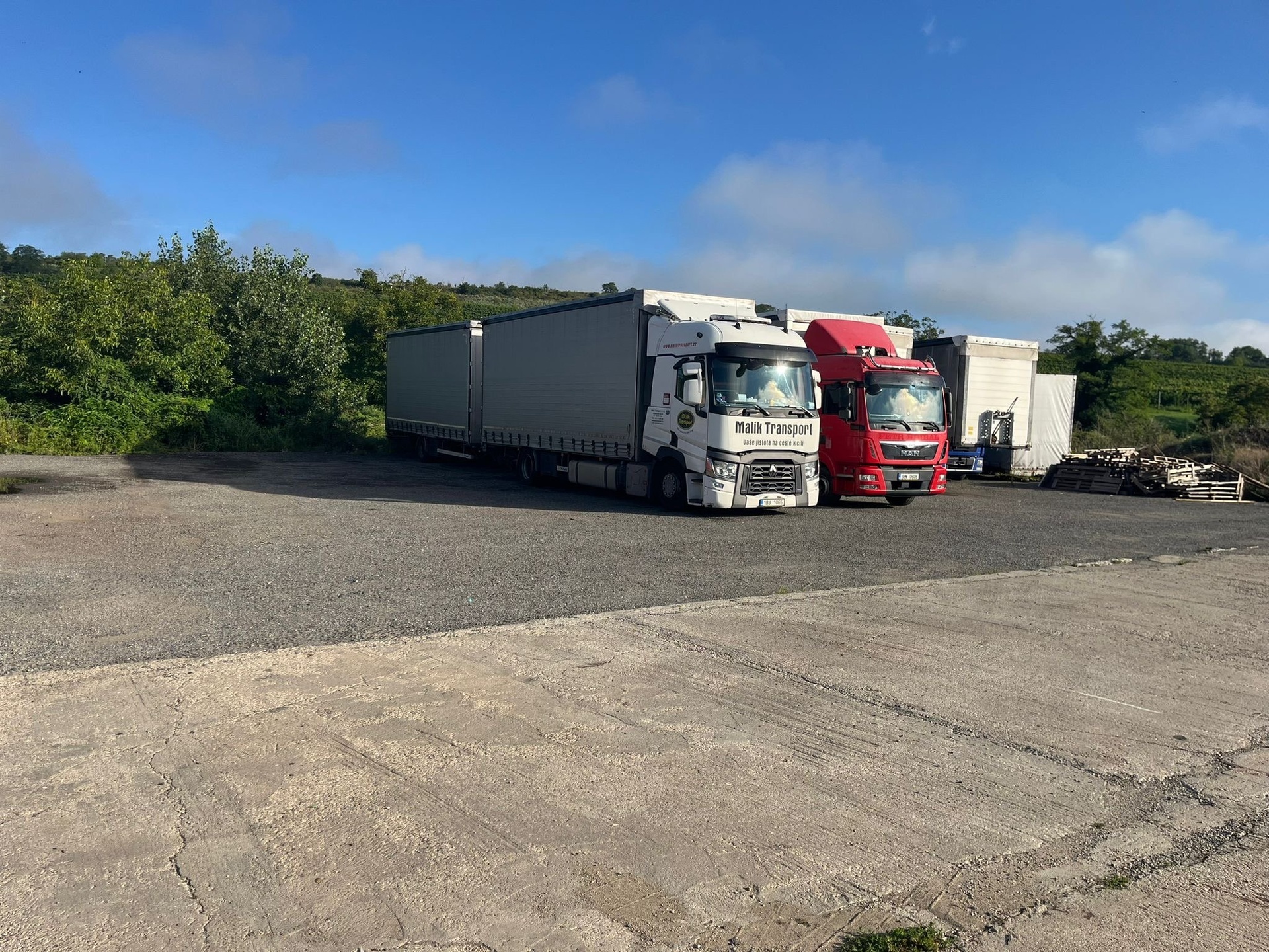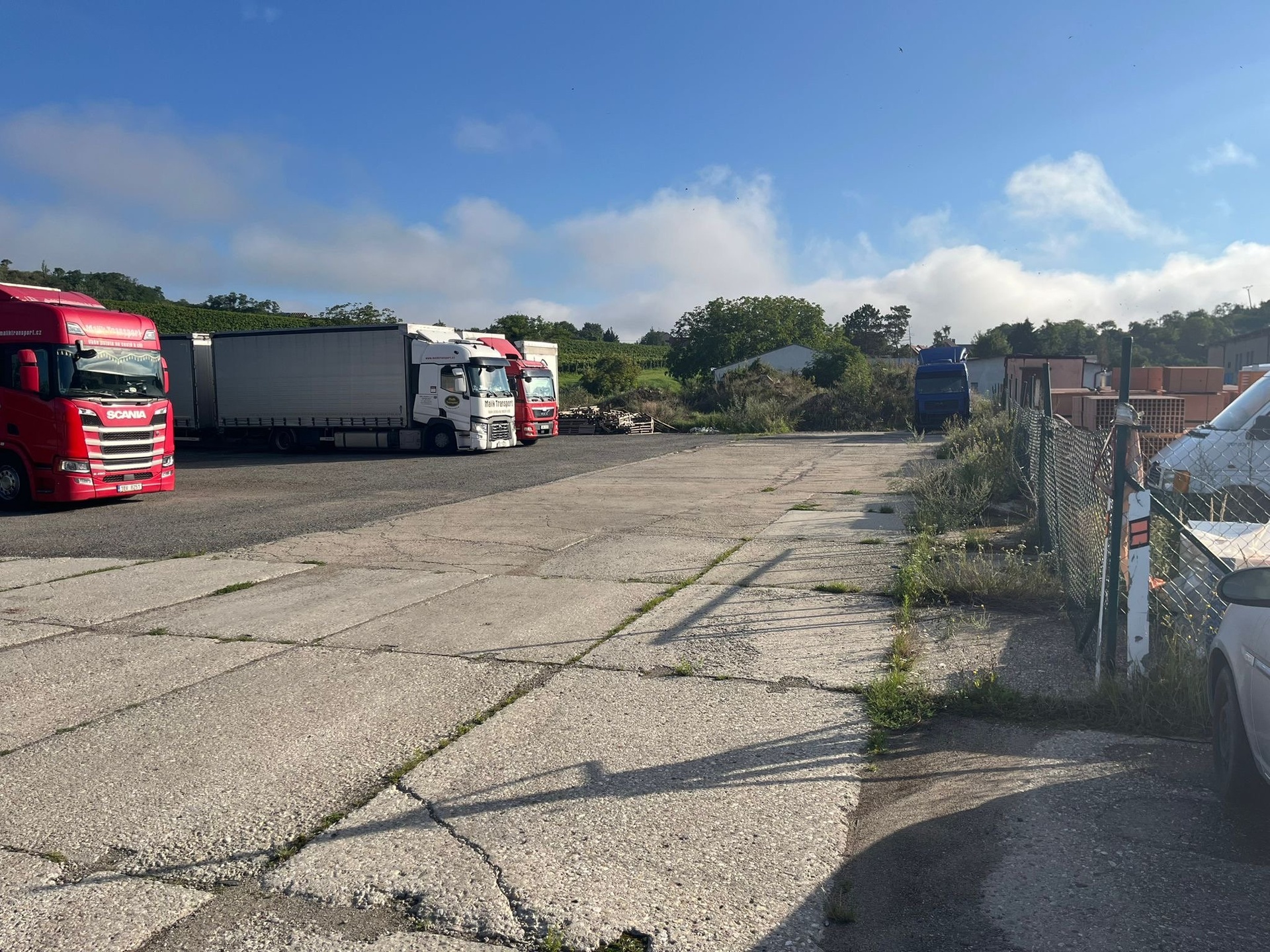 Uvedené pozemky slouží v současné době jako odstavná a parkovací plocha pro osobní a nákladní vozidla. Na okraji pozemku je el. přípojka 230/400V, kanalizace a voda na sousedním pozemku.