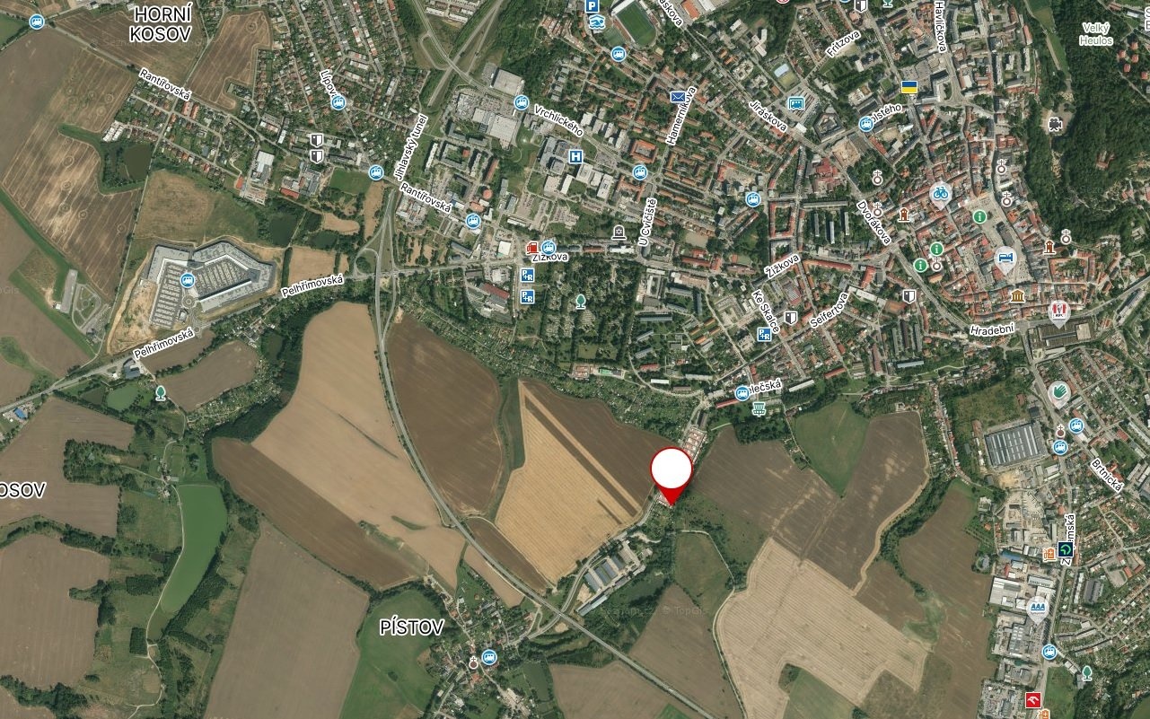 Garáž je situována v městské zástavbě mezi Pístovem a ulicí Telečská.