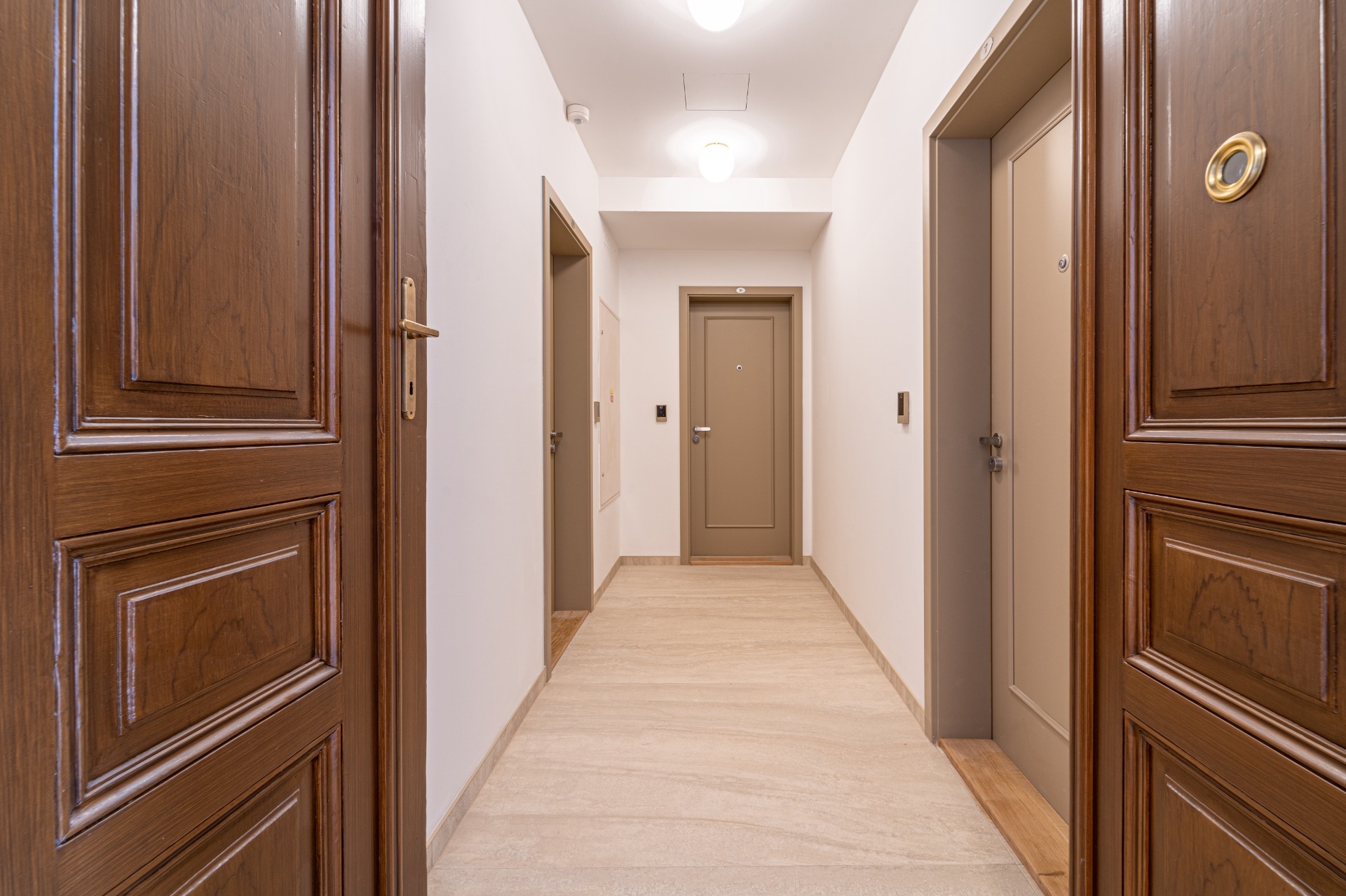 Okna a vstupní dveře jsou původní, repasované a částečně modernizované tak, aby se přiblížily současným technickým standardům.