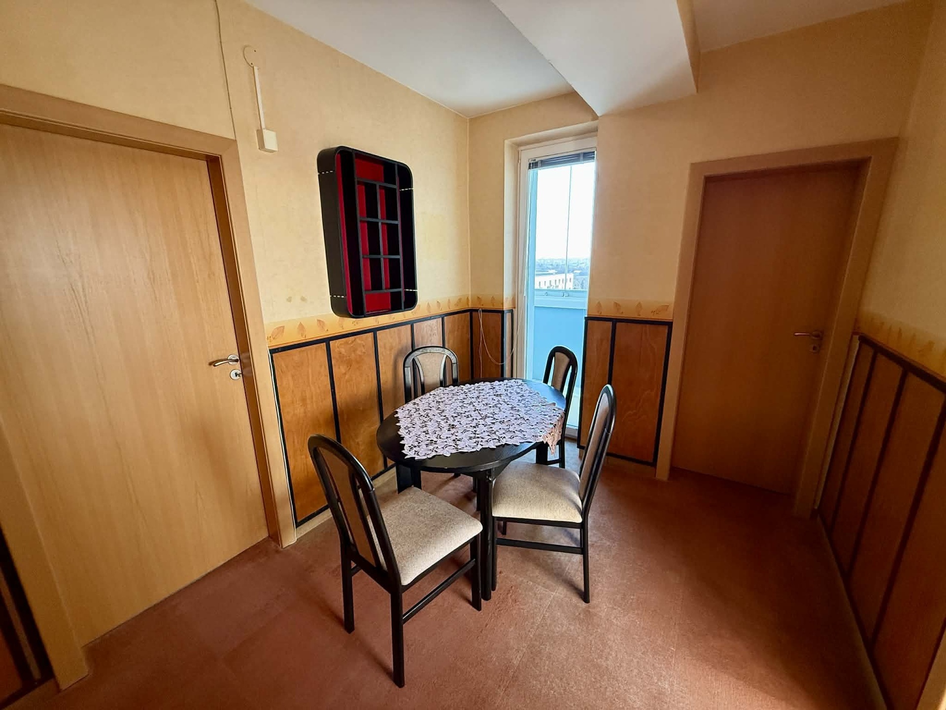 Dispozice bytu: Z prostorné chodby je vstup do všech místností, koupelny vybavené vanou a samostatného WC. Obývací pokoj je samostatný, kuchyň je oddělena dveřmi a lodžie je přístupná z chodby, ve které se nachází jídelní kout. Ložnice a další pokoj poskytují dostatek prostoru pro bydlení i práci z domova.